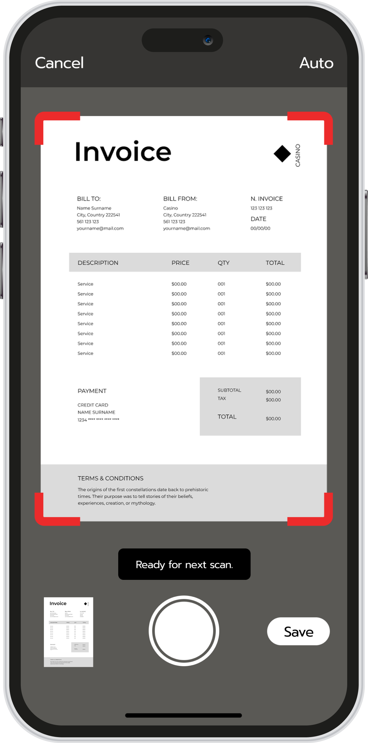 Use your camera to scan receipts, notes, or multipage documents with automatic cropping, filters, and image enhancements that ensure every page looks sharp and clear